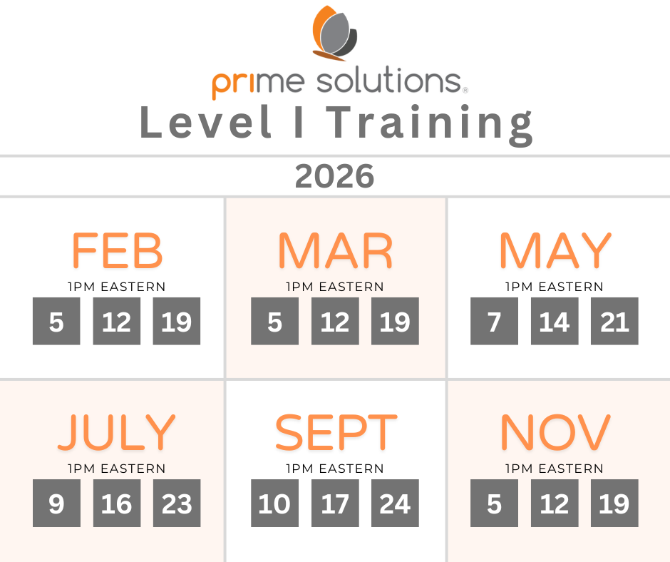 Prime Solutions Level I Training Series are hosted throughout the year.